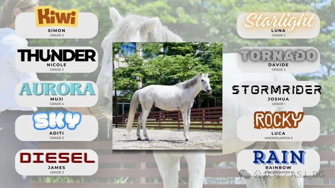 衷心感谢所有参与本次激动人心的马匹命名比赛的学生们!同学们展现的创意与思考令人赞叹不已。评审团面临了十分艰难的选择,但最终我们从众多精彩投稿中确定了前十名入围名单。