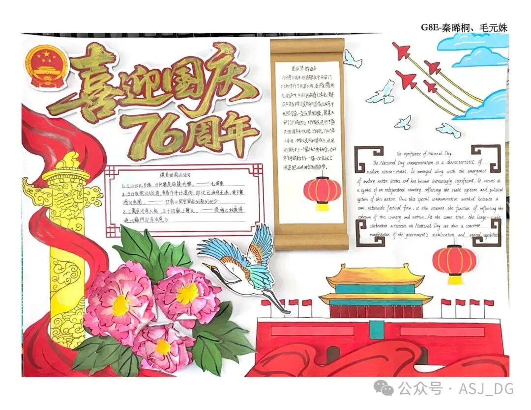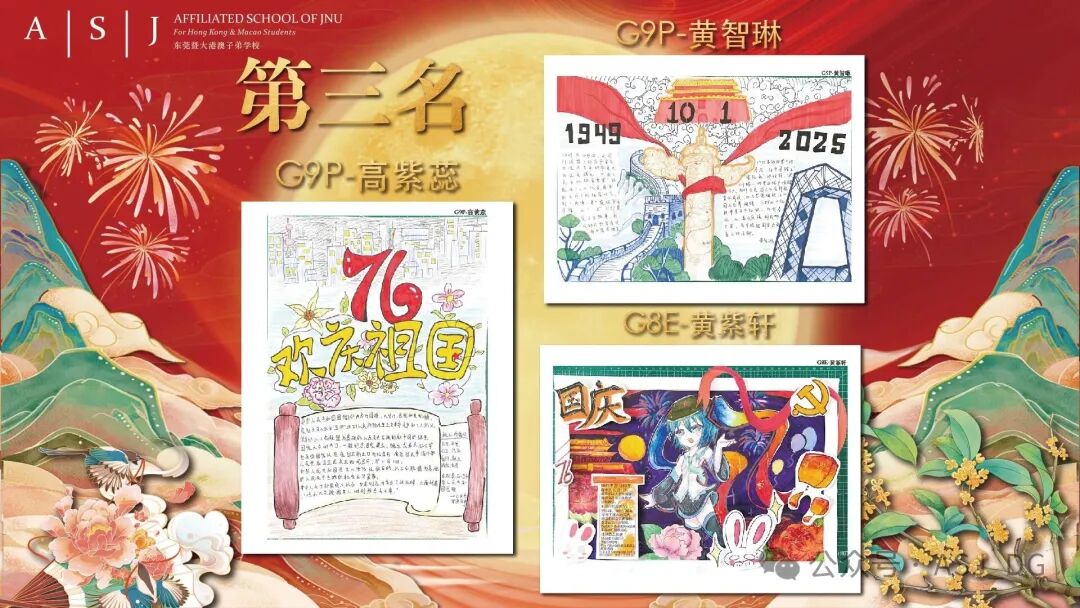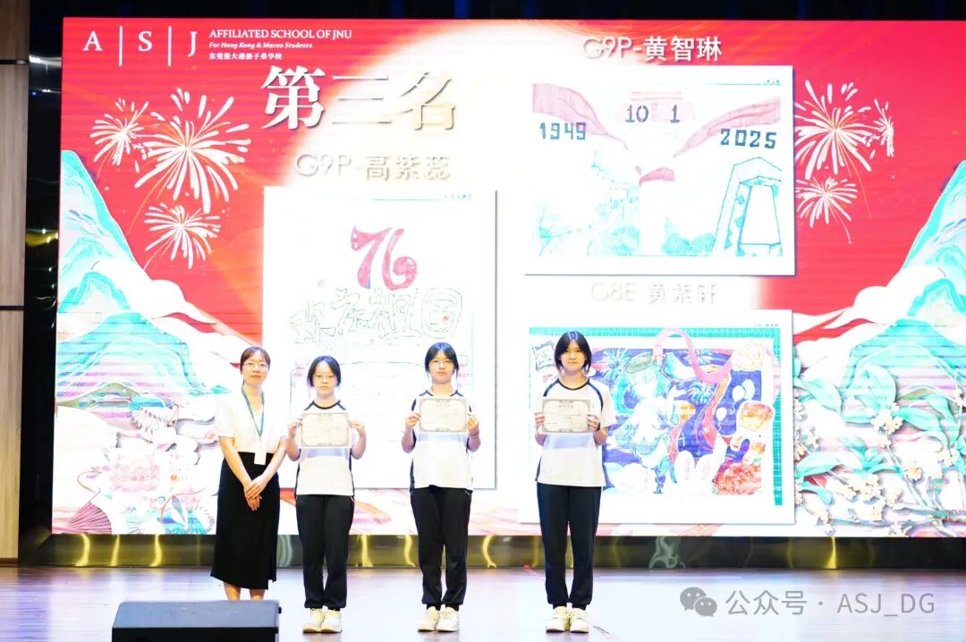 To celebrate the 76th anniversary of the founding of the People's Republic of China, ASJ (Dongguan) recently hosted a handmade poster contest with the theme “A Prosperous Era, Building a Brighter Future.” The competition encouraged students to integrate art with subjects like history and social studies, deepening their understanding of the nation’s journey and achievements while nurturing both creative expression and patriotic pride.