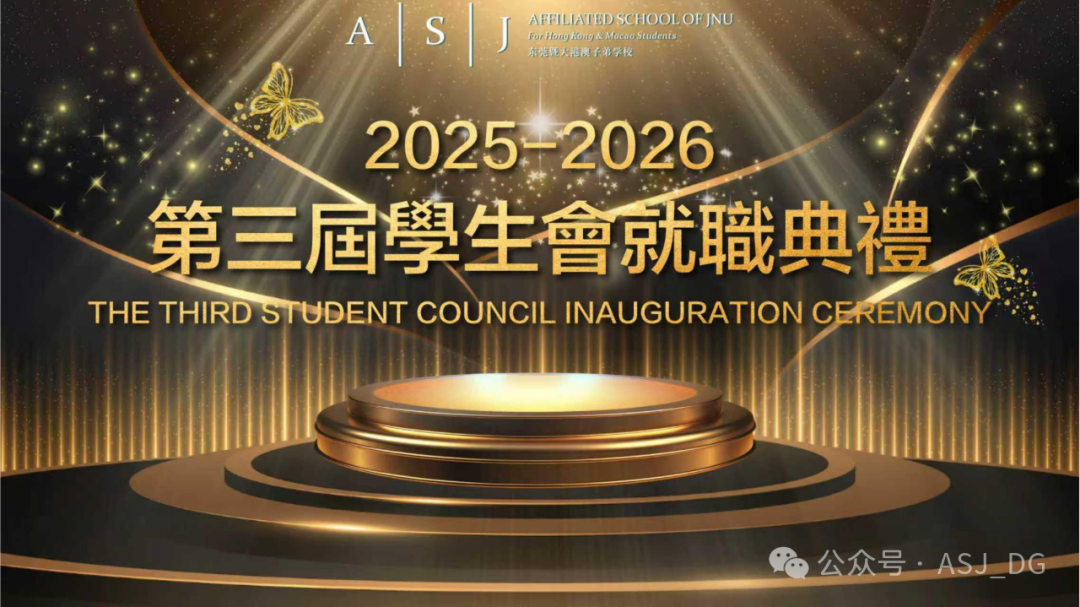 上周五,东莞暨大港澳子弟学校隆重举行了2025-2026学年第三届学生会就职典礼。典礼以“青春接力·使命在肩”为主题,在庄严而热烈的氛围中,新一届学生会成员正式接过了服务同学、建设校园的接力棒。