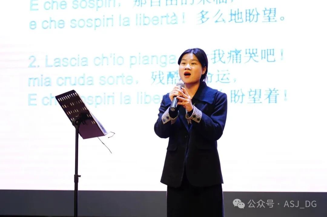 在题为《歌声连着你和我——外国经典歌曲赏析》的讲座中,任丽华教授为同学们优雅地打开了西方声乐艺术之门。她精心选取艺术歌曲与歌剧咏叹调两大类别,引领听众领略了不同时代、不同风格的声乐魅力。活动创新采用"讲演结合"模式,任教授携手欧阳勤、彭华艳、沈畅悦三位青年歌唱家现场示范,将舞台变为沉浸式的迷你音乐厅。