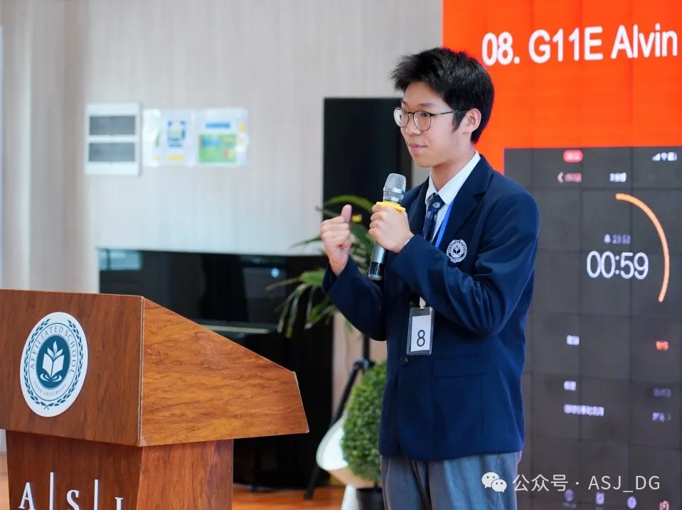 Alvin Fu 回到了母校——东莞ASJ。站在熟悉的校园里,他如今已是深圳大学法律系的一名大学生,带着成长的收获,回来为G12的学弟学妹点亮一盏灯。