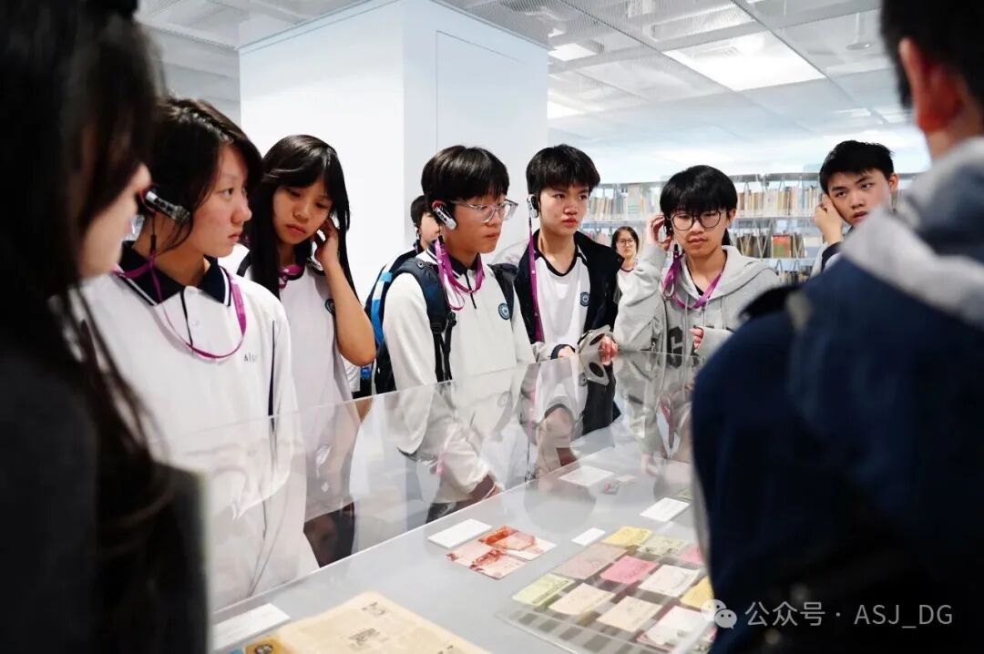 Teacher Zhu, a researcher from The Chinese University of Hong Kong's Special Collections Department, presented a lecture as part of the "Hong Kong Literature Special Collection" exhibition. Students explored Hong Kong literature through various knick-knacks, noting how items like "Coca-Cola" and the Bible, along with traditional symbols from the "Sleeping Cat House," illustrate the fusion of Eastern and Western cultures. Theater and movie tickets further showcased Hong Kong's cultural development. Additionally, students engaged with the "AR Interaction: Chinese Language Learning and Hong Kong Literary Trail."