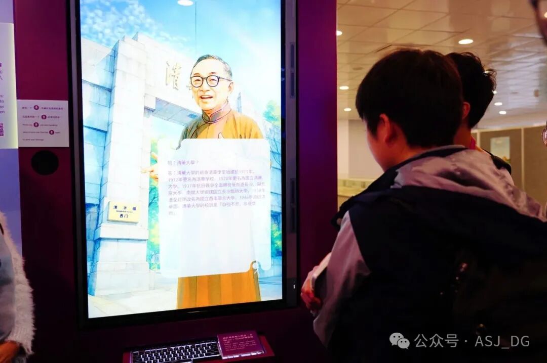 学生感受了在危难之际,两所名校因教育结缘。通过AI人物互动提问了解了两所学校的校史,还参观了包括朱自清先生、杨振宁先生等人的旧照,还阅读了清华第一届毕业生的成绩单。