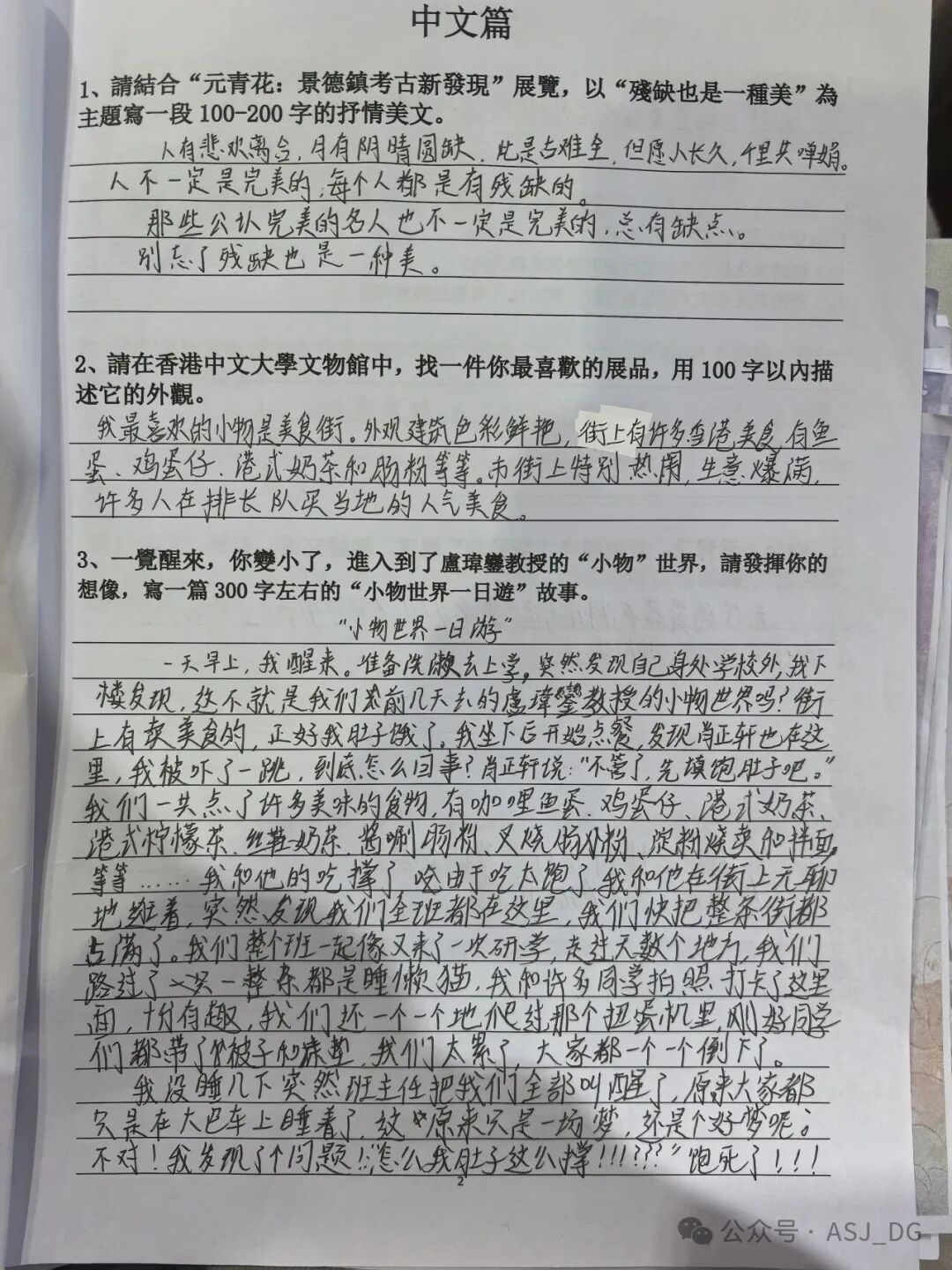 In the Chinese language section, students delved into Hong Kong literature, creatively writing narratives about life in a world of "small objects" and exploring the "beauty of imperfection" in porcelain shards.