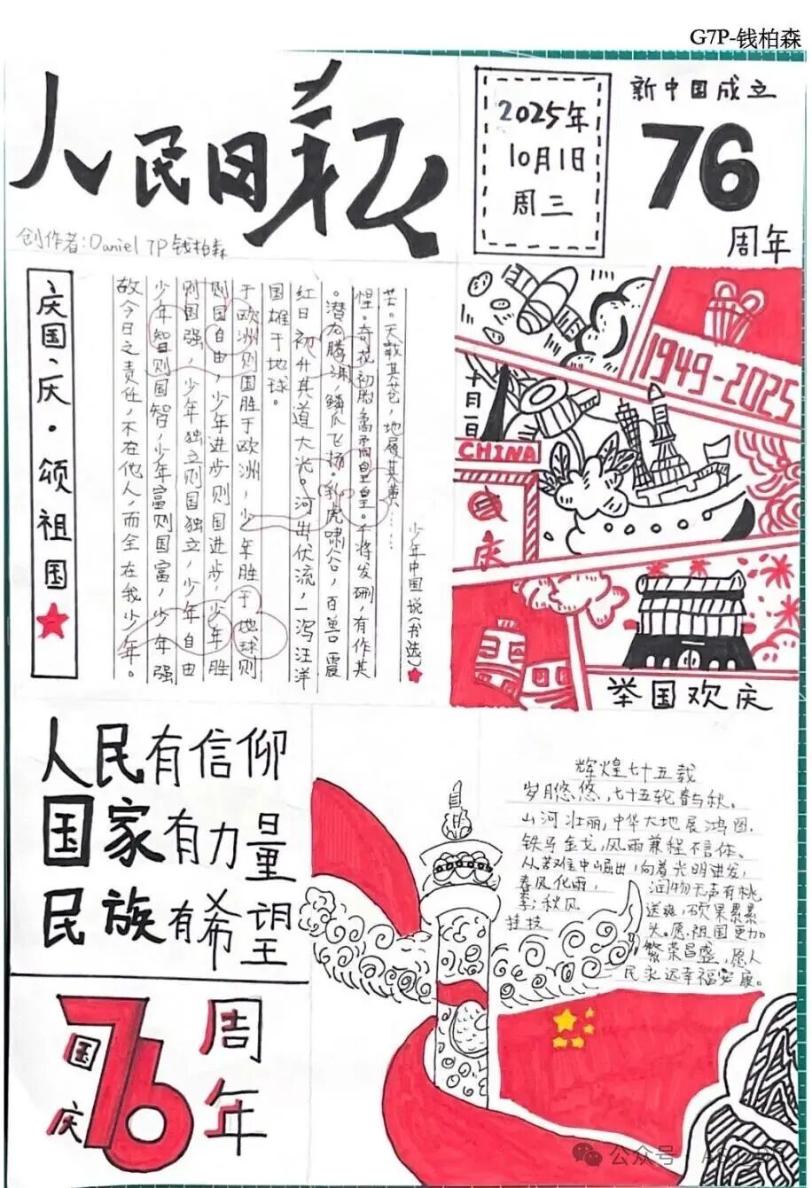 此次手抄报比赛不仅是一次艺术创作的展示,更是一堂生动的爱国主义教育课。同学们在动手实践中增强了对国家历史的认知,提升了对文化传承的责任感。