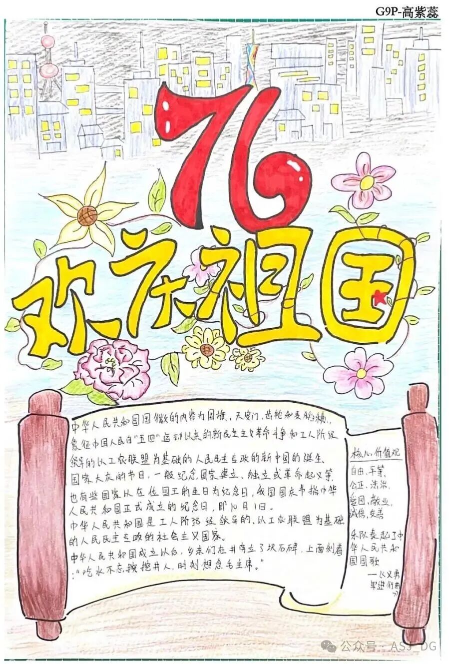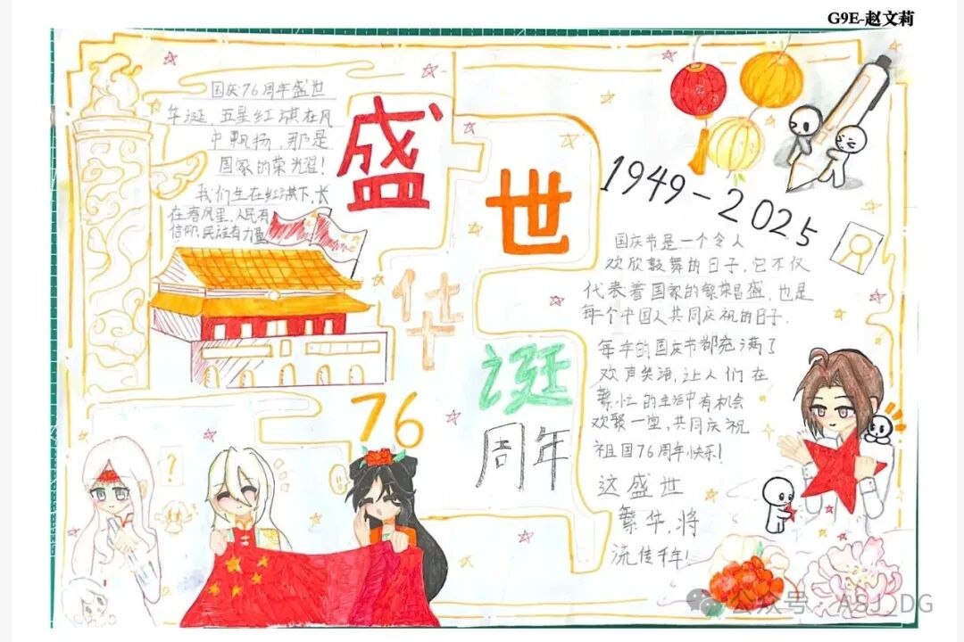 为庆祝中华人民共和国成立76周年,东莞暨大港澳子弟学校于近日举办了以“盛世华诞,共铸辉煌”为主题的手抄报创作比赛。本次活动旨在通过艺术与历史、公社等学科融合的方式,加深同学们对国家历史与发展成就的理解,激发爱国情怀与创作热情。