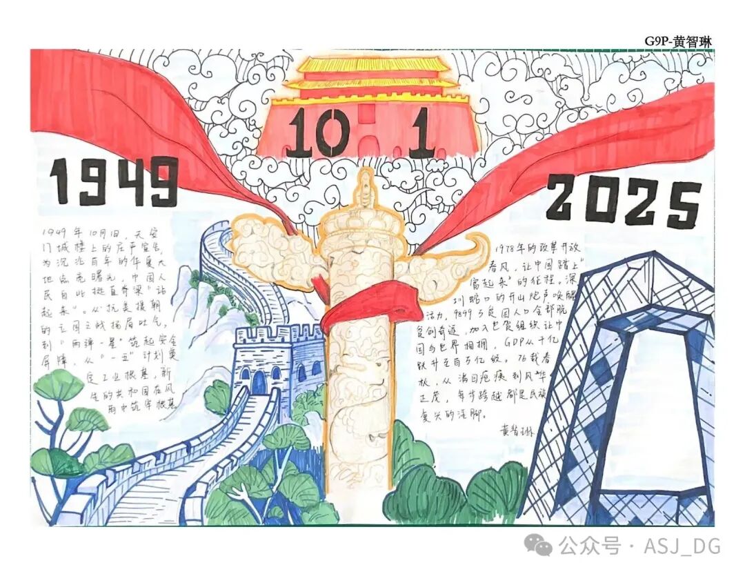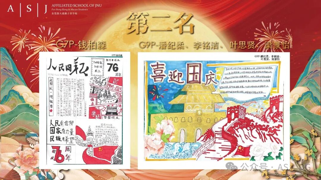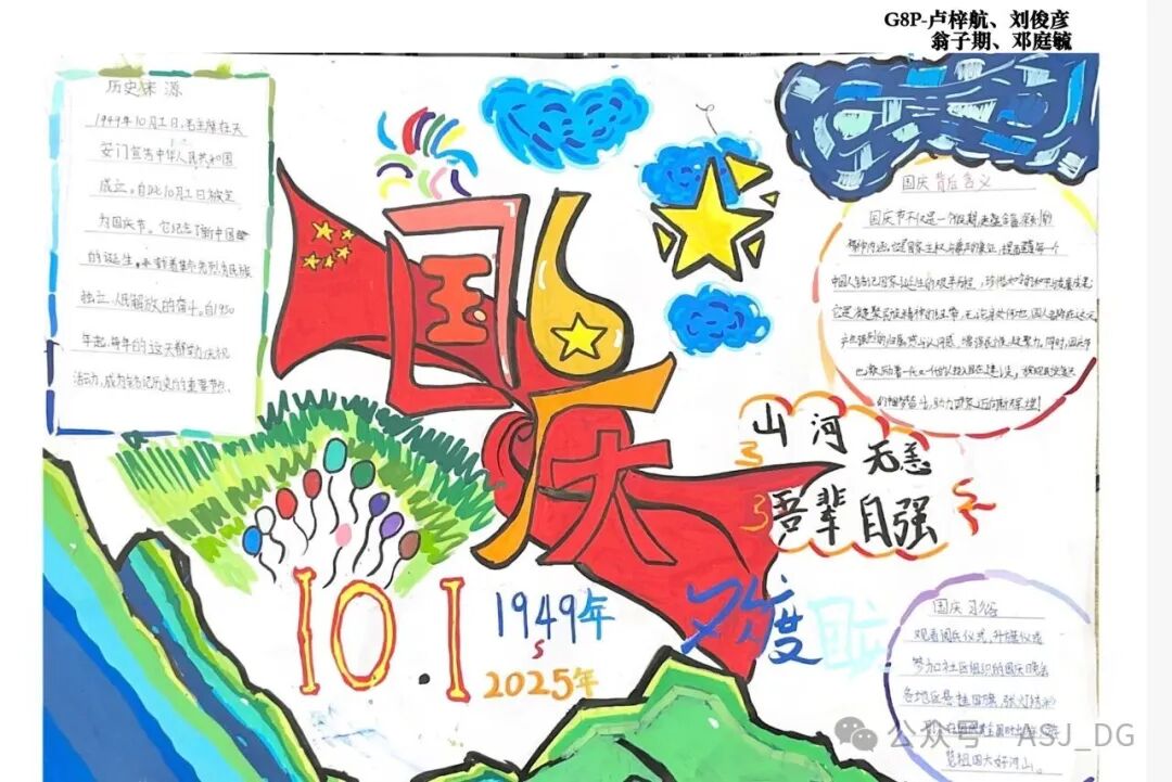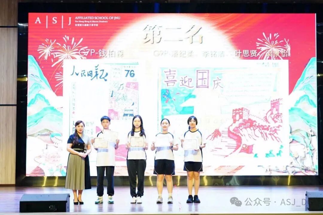 To celebrate the 76th anniversary of the founding of the People's Republic of China, ASJ (Dongguan) recently hosted a handmade poster contest with the theme “A Prosperous Era, Building a Brighter Future.” The competition encouraged students to integrate art with subjects like history and social studies, deepening their understanding of the nation’s journey and achievements while nurturing both creative expression and patriotic pride.
