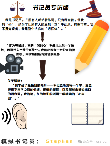 课本上的《宪法》变成墙上的“文字”,晦涩的法律条文成为捍卫权利的保障,活动现场,同学们带着问题,认真记录,活动结束后,大家共同制作了“小红书”推文图片,将法院的职能、庭审的流程和在模拟法庭中的故事、感悟变成自媒体传播的形式,让法治的火种踏着信息技术的平台,点燃更多人,培养学生的公民责任意识。