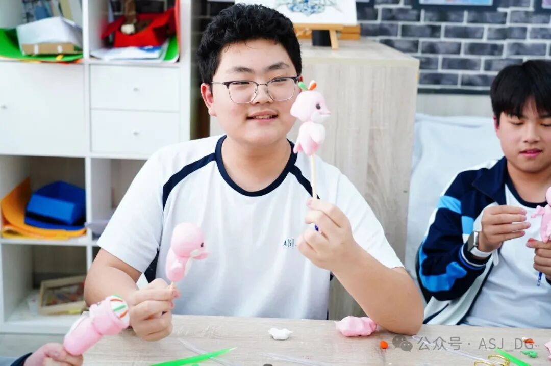 As the activity drew to a close, students delightedly held up their completed "Lerongrong" creations — each pink Chinese white dolphin was vivid and lifelike, boasting its own unique posture and a charmingly naive appeal. This immersive experience not only allowed students to feel the charm of folk crafts up close and learn basic dough sculpture techniques but also successfully built a bridge between tradition and modernity, achieving a perfect blend of inheritance and innovation.