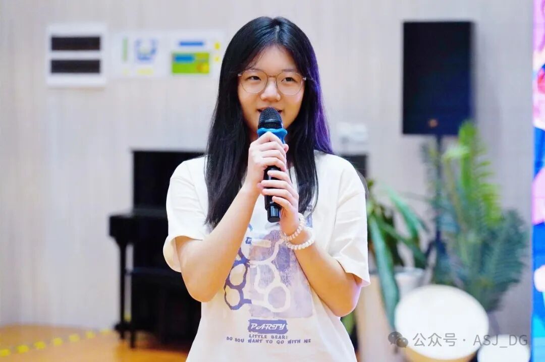 这份活力,也从学习延伸至生活。Vivian迅速融入了东莞ASJ的社群,担任广播站站长,多次主持学校晚会。Vivian分享道,“它们让我真正走进了这所学校,在参与中感受到自己属于这里。”对她而言,成长正是在这一次次的连接与付出中,变得生动而具体。